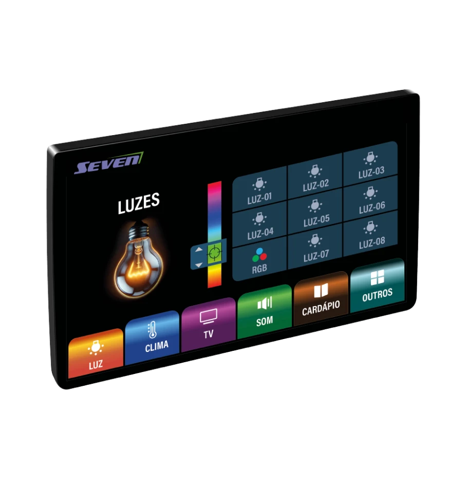 O Seven é o painel de automação digital com display colorido de 7”, desenvolvido para oferecer máxima tecnologia, funcionalidade e uma experiência visual envolvente.